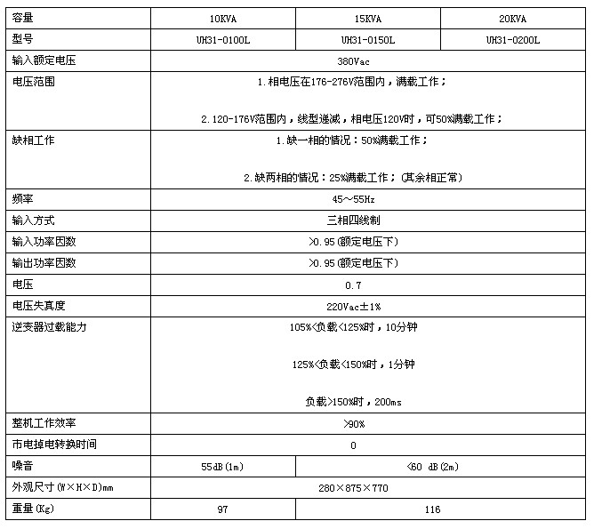 iTrust UH31系列UPS为三进单出型(三相输入,单相输出)智能高频在线式交流不间断电源系统,共有三个规格,额定输出容量分别为10kVA、15kVA和20kVA。适用于小型计算机中心、网络间、通信系统、办公终端、医疗设备和精密仪器设备的交流供电。